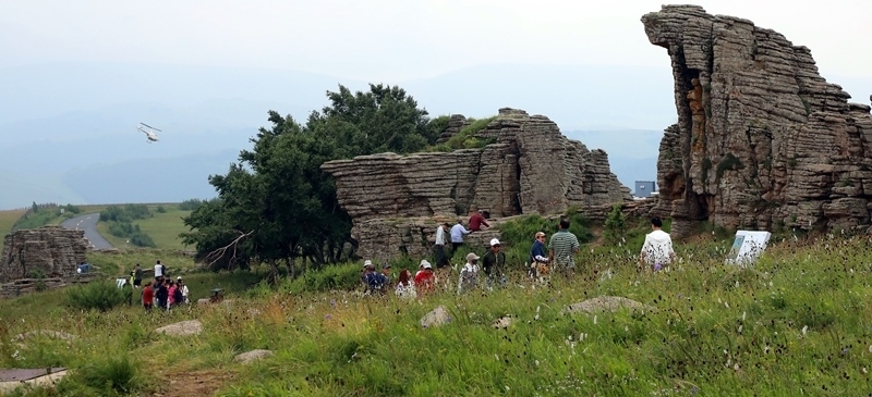 7月24日,空中觀光直升機(jī)從內(nèi)蒙古自治區(qū)赤峰市克什克騰旗阿斯哈圖石林上空飛過(guò)。