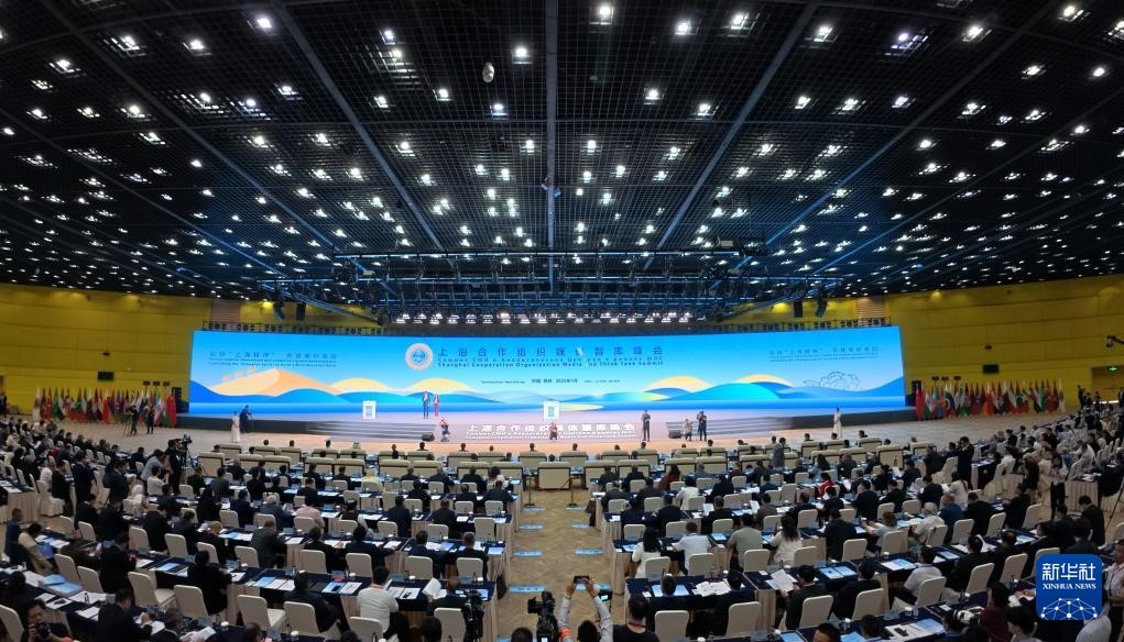 這是7月25日拍攝的上海合作組織媒體智庫峰會全體會議現(xiàn)場。新華社記者 李嘉南 攝