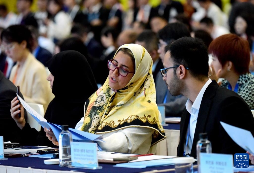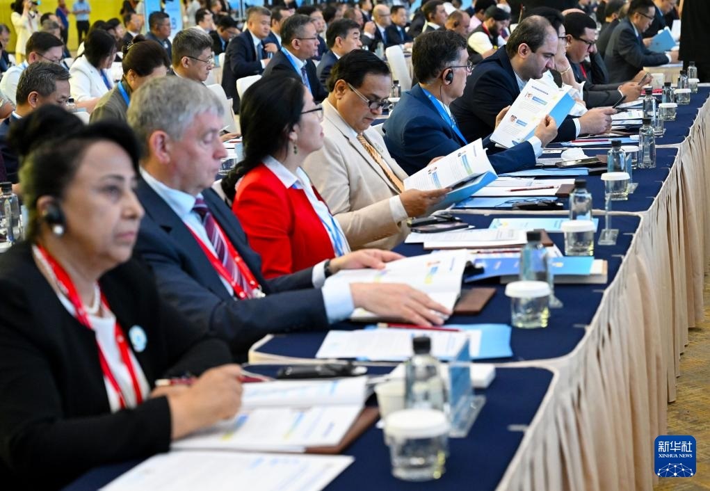 這是7月25日拍攝的上海合作組織媒體智庫峰會全體會議現(xiàn)場。新華社記者 高潔 攝