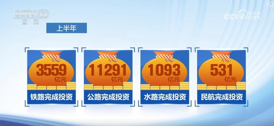 交通運(yùn)輸部數(shù)據(jù)顯示,上半年,我國(guó)完成交通固定資產(chǎn)投資16474億元,其中,鐵路、公路、水路、民航分別完成投資3559億元、11291億元、1093億元和531億元。