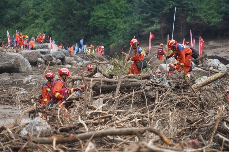 8月10日,國家綜合性消防救援隊(duì)伍救援人員在甘肅省榆中縣馬坡鄉(xiāng)馬蓮灘村、舊莊溝村和城關(guān)鎮(zhèn)興隆山村等區(qū)域持續(xù)搜救失聯(lián)人員。