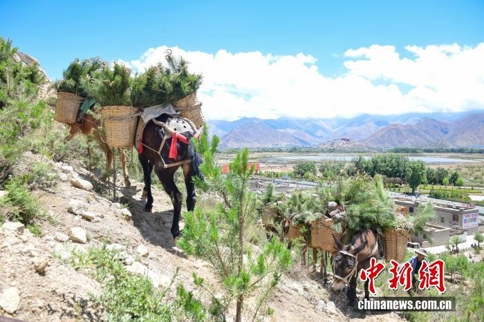 拉薩河流域造林隊員運送樟子松樹苗。(資料圖) 中新社記者 貢嘎來松 攝
