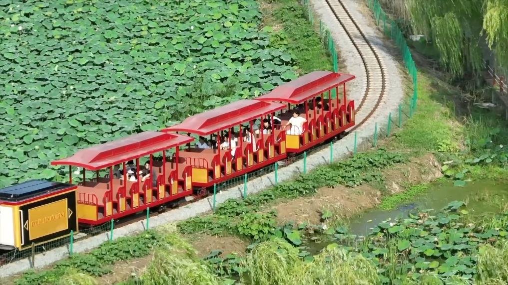 觀光小火車、游艇穿梭其間,農(nóng)旅融合讓“荷塘經(jīng)濟”綻放新光彩。