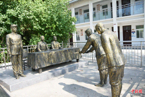 漯河市第二中學(xué)內(nèi)復(fù)原日軍受降儀式現(xiàn)場雕像。王宇 攝