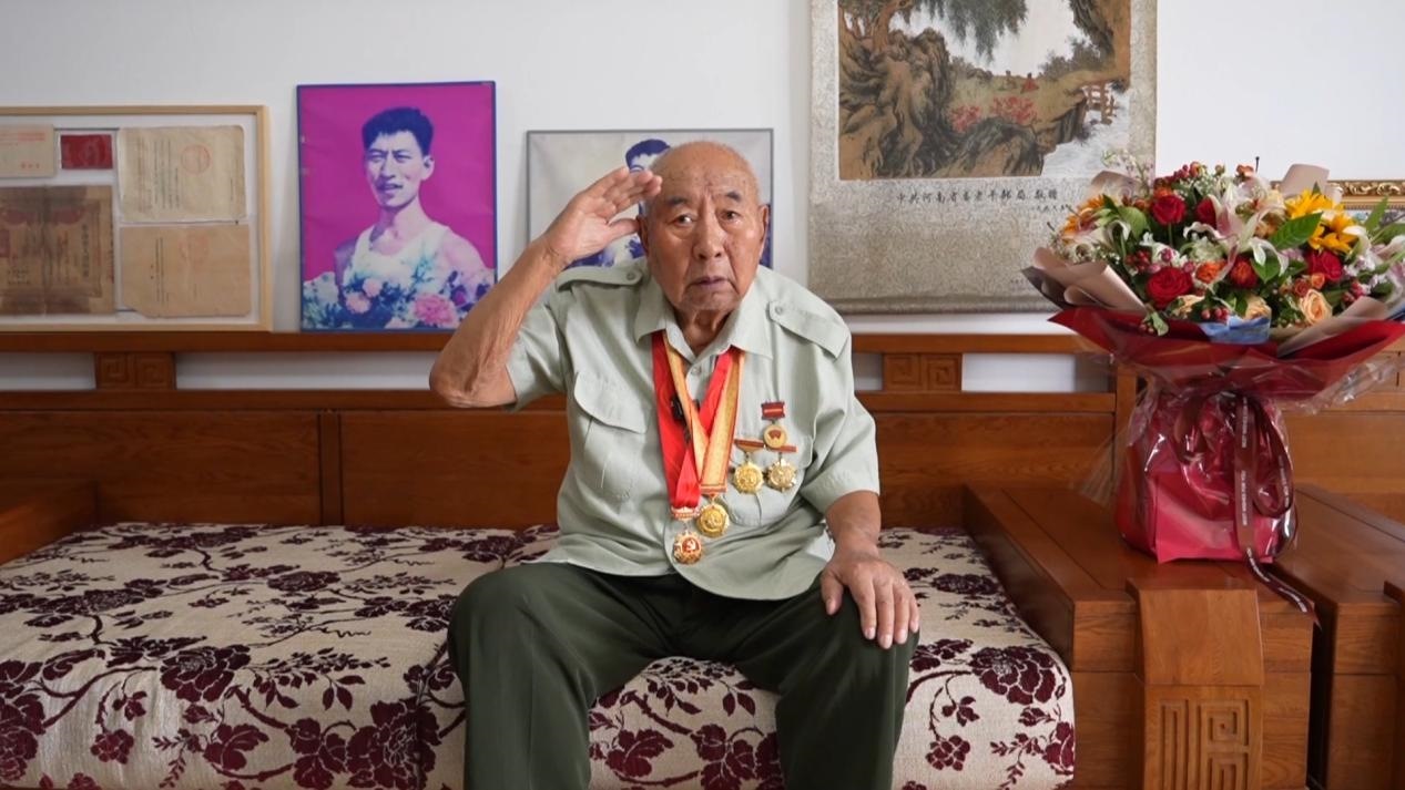 手捧“中國(guó)人民抗日戰(zhàn)爭(zhēng)勝利80周年”紀(jì)念章,