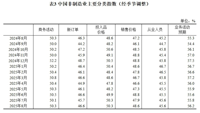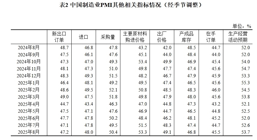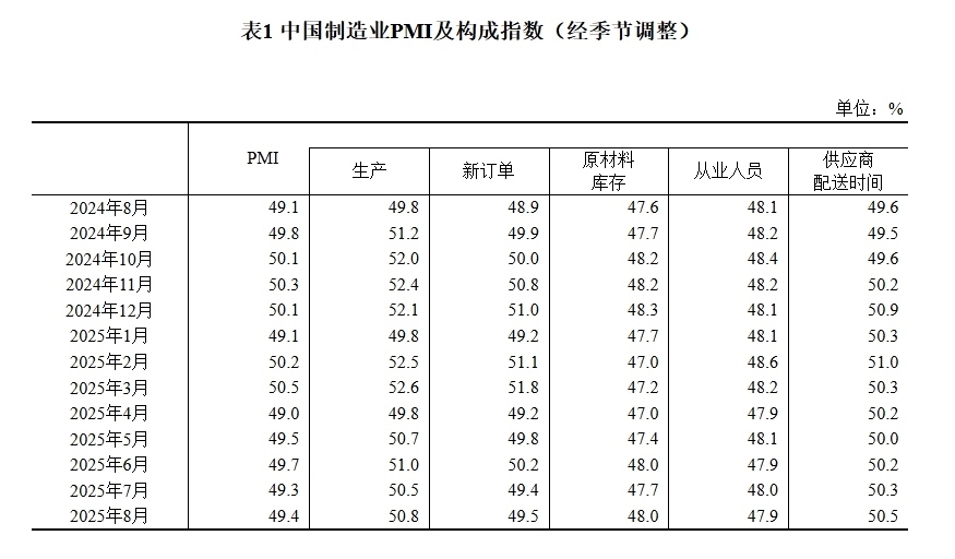 據(jù)國家統(tǒng)計(jì)局網(wǎng)站消息,國家統(tǒng)計(jì)局8月31日發(fā)布2025年8月中國采購經(jīng)理指數(shù)運(yùn)行情況。