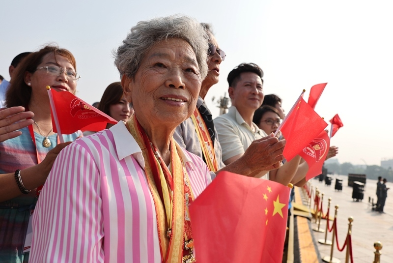9月3日,紀(jì)念中國(guó)人民抗日戰(zhàn)爭(zhēng)暨世界反法西斯戰(zhàn)爭(zhēng)勝利80周年大會(huì)在北京隆重舉行。這是來(lái)自香港的抗戰(zhàn)老兵林珍(前)。