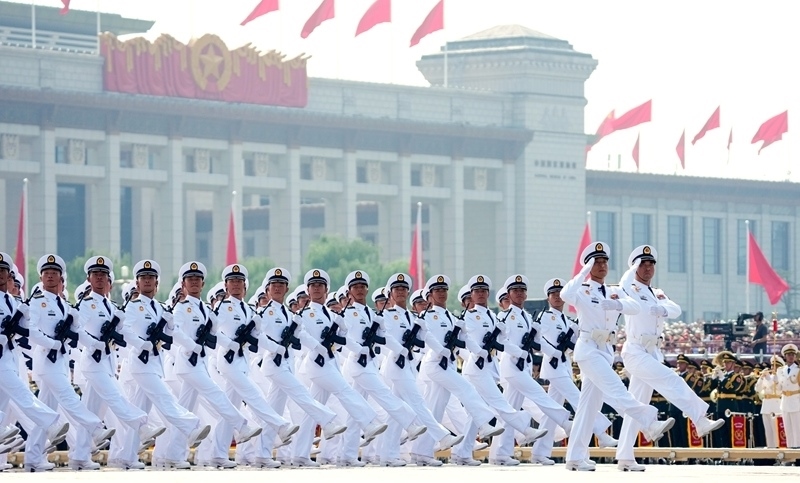 9月3日,紀(jì)念中國(guó)人民抗日戰(zhàn)爭(zhēng)暨世界反法西斯戰(zhàn)爭(zhēng)勝利80周年大會(huì)在北京隆重舉行。這是海軍方隊(duì)接受檢閱。