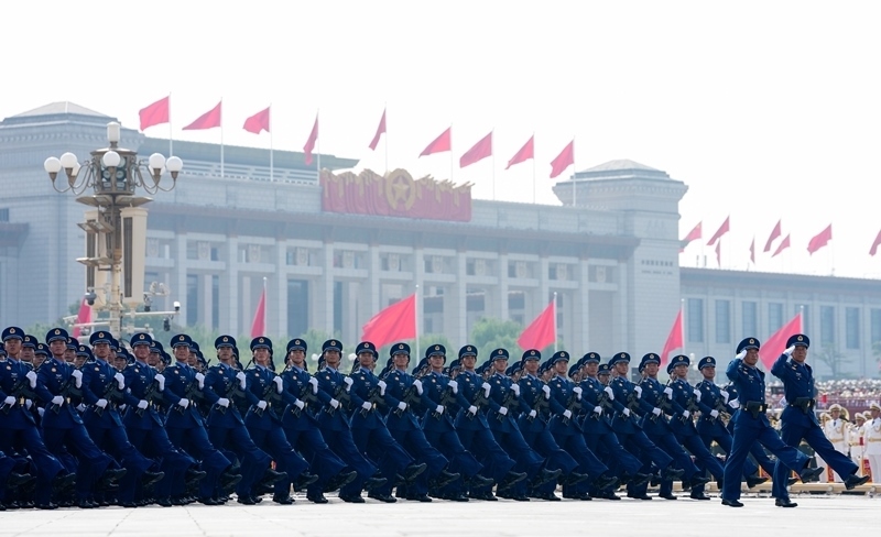 9月3日,紀(jì)念中國(guó)人民抗日戰(zhàn)爭(zhēng)暨世界反法西斯戰(zhàn)爭(zhēng)勝利80周年大會(huì)在北京隆重舉行。這是空軍方隊(duì)接受檢閱。