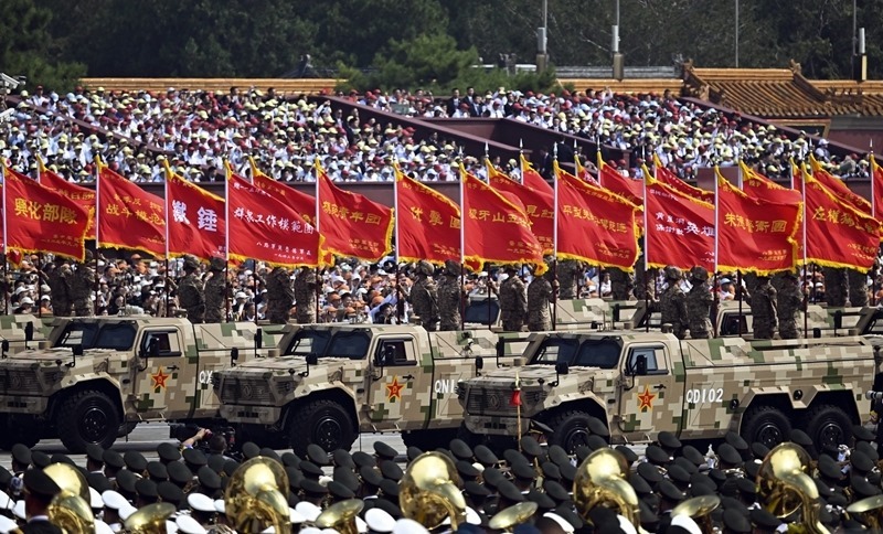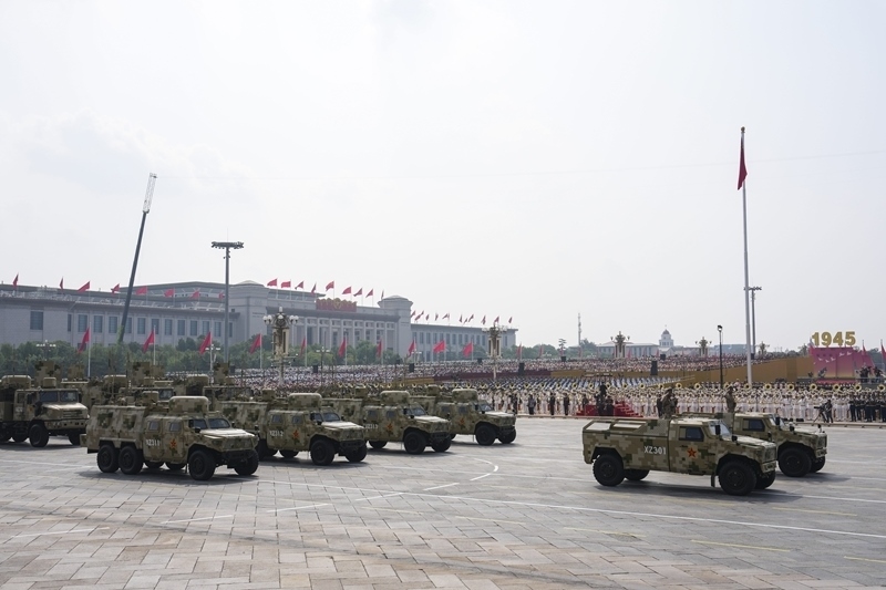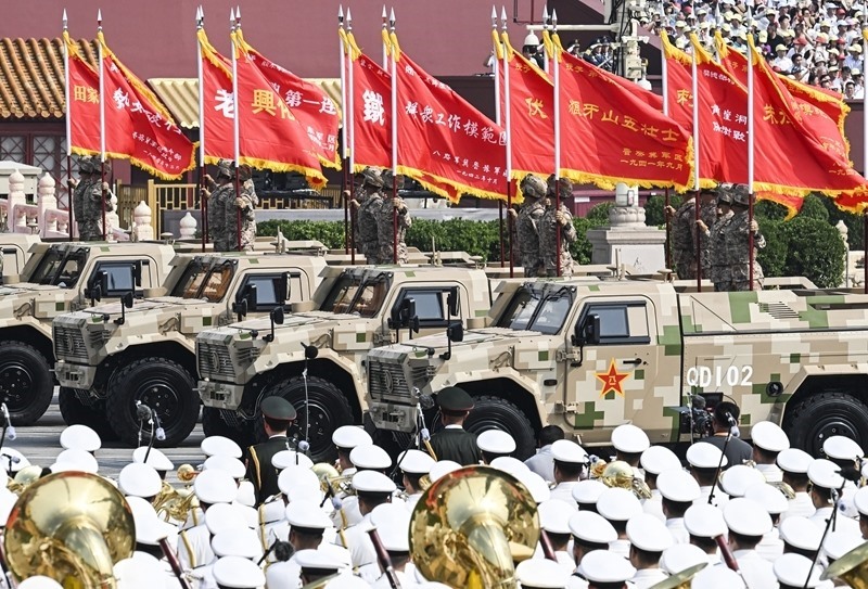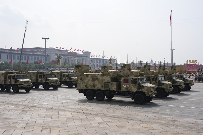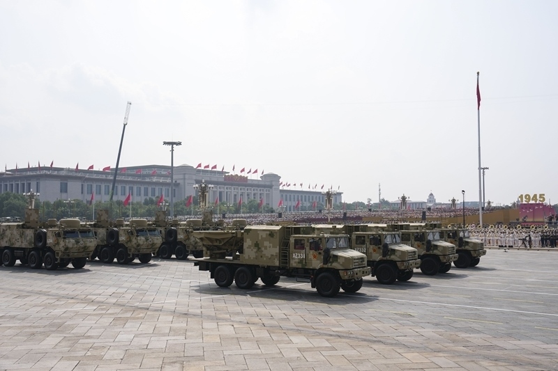 9月3日,紀(jì)念中國(guó)人民抗日戰(zhàn)爭(zhēng)暨世界反法西斯戰(zhàn)爭(zhēng)勝利80周年大會(huì)在北京隆重舉行。這是信息支援方隊(duì)接受檢閱。