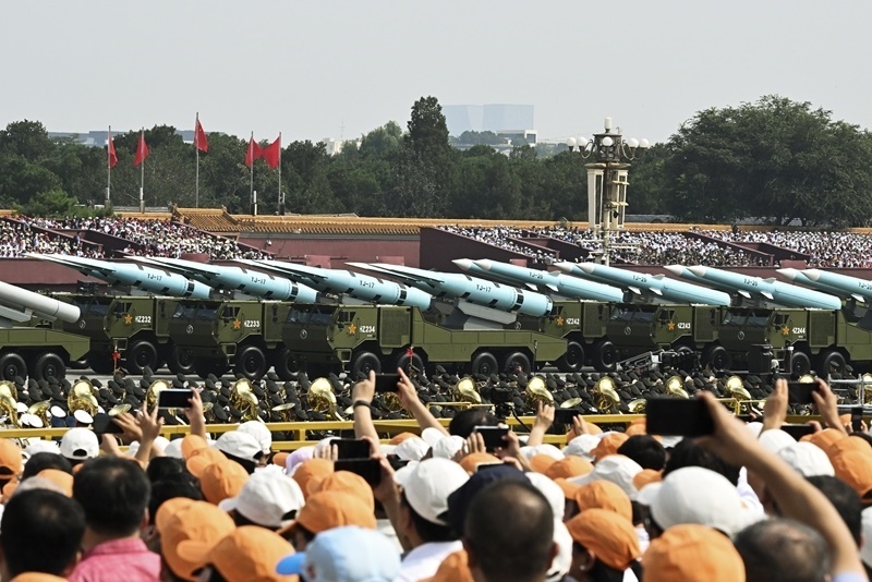 9月3日,紀(jì)念中國(guó)人民抗日戰(zhàn)爭(zhēng)暨世界反法西斯戰(zhàn)爭(zhēng)勝利80周年大會(huì)在北京隆重舉行。這是火箭軍方隊(duì)接受檢閱。