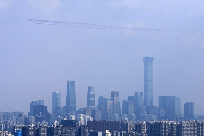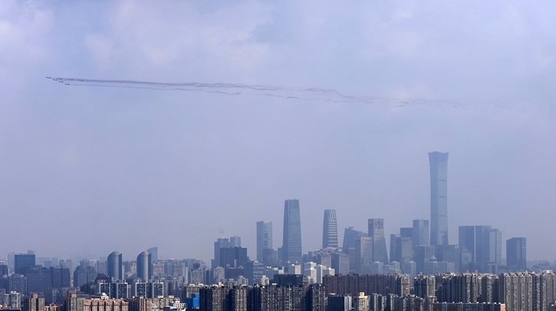 9月3日,紀(jì)念中國(guó)人民抗日戰(zhàn)爭(zhēng)暨世界反法西斯戰(zhàn)爭(zhēng)勝利80周年大會(huì)在北京隆重舉行。這是教練機(jī)梯隊(duì)接受檢閱。