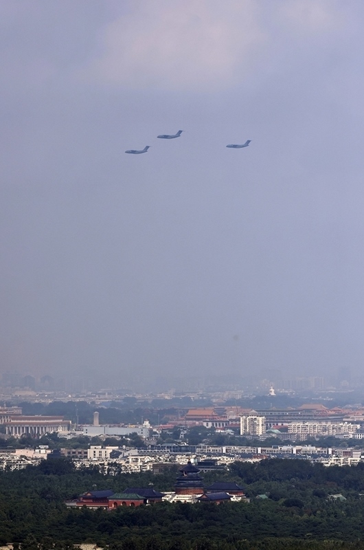 9月3日,紀(jì)念中國(guó)人民抗日戰(zhàn)爭(zhēng)暨世界反法西斯戰(zhàn)爭(zhēng)勝利80周年大會(huì)在北京隆重舉行。這是運(yùn)輸機(jī)梯隊(duì)接受檢閱。