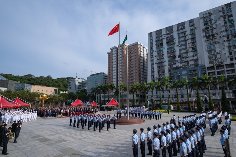 10月1日,澳門特別行政區(qū)政府在金蓮花廣場隆重舉行升旗儀式,慶祝中華人民共和國成立76周年。