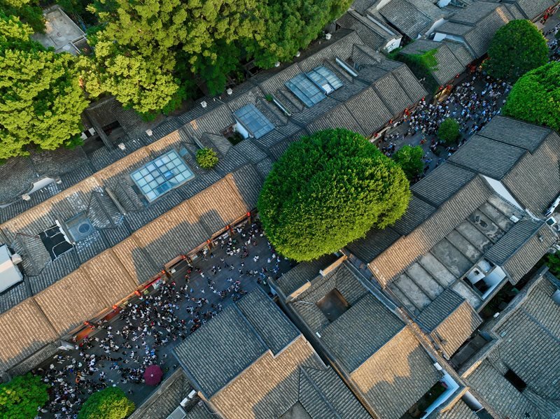 10月2日,福州三坊七巷內(nèi)游人如織(無人機(jī)照片)。