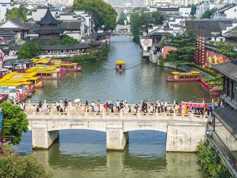 10月5日,人們?cè)谀暇┓蜃訌R景區(qū)游玩(無人機(jī)照片)。