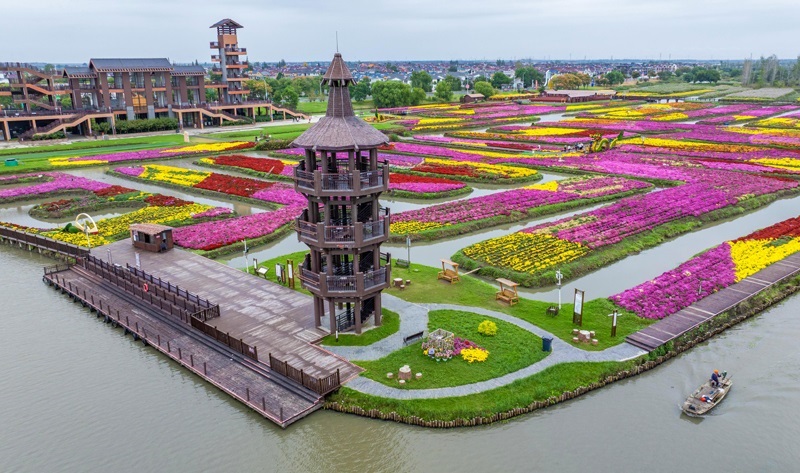 10月17日,游客在江蘇省興化市千垛景區(qū)賞菊游玩(無(wú)人機(jī)照片)。