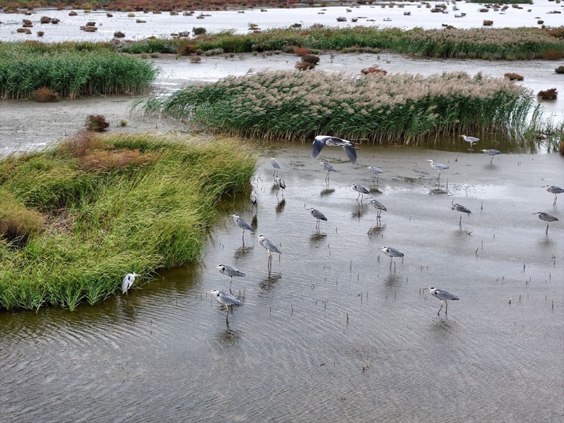 10月17日,在江蘇省泰州市姜堰區(qū)溱湖國(guó)家濕地公園,一群麋鹿在棲息、覓食(無(wú)人機(jī)照片)。