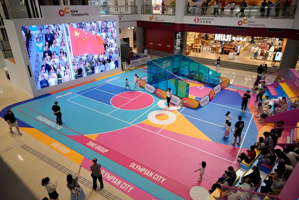 11月9日,第十五屆全國(guó)運(yùn)動(dòng)會(huì)開(kāi)幕式在廣東奧林匹克體育中心舉行,這是香港市民在一家商場(chǎng)內(nèi)觀看直播。新華社發(fā)(盧炳輝 攝)