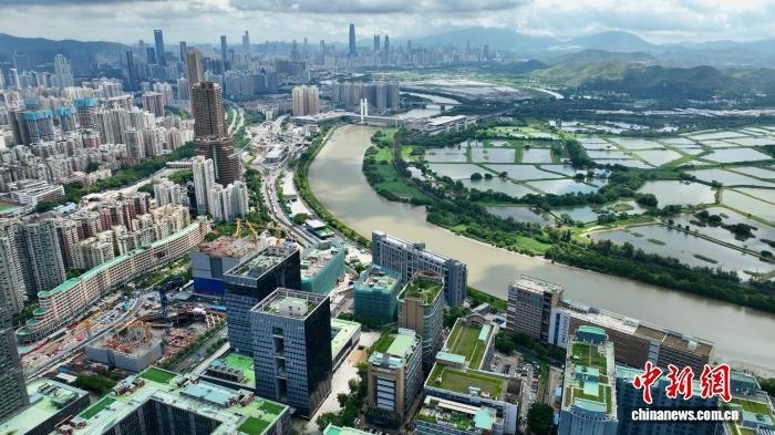 資料圖:圖為2022年7月7日拍攝的俯瞰河套深港科技創(chuàng)新合作區(qū)。(無人機(jī)照片) 中新社記者 陳文 攝