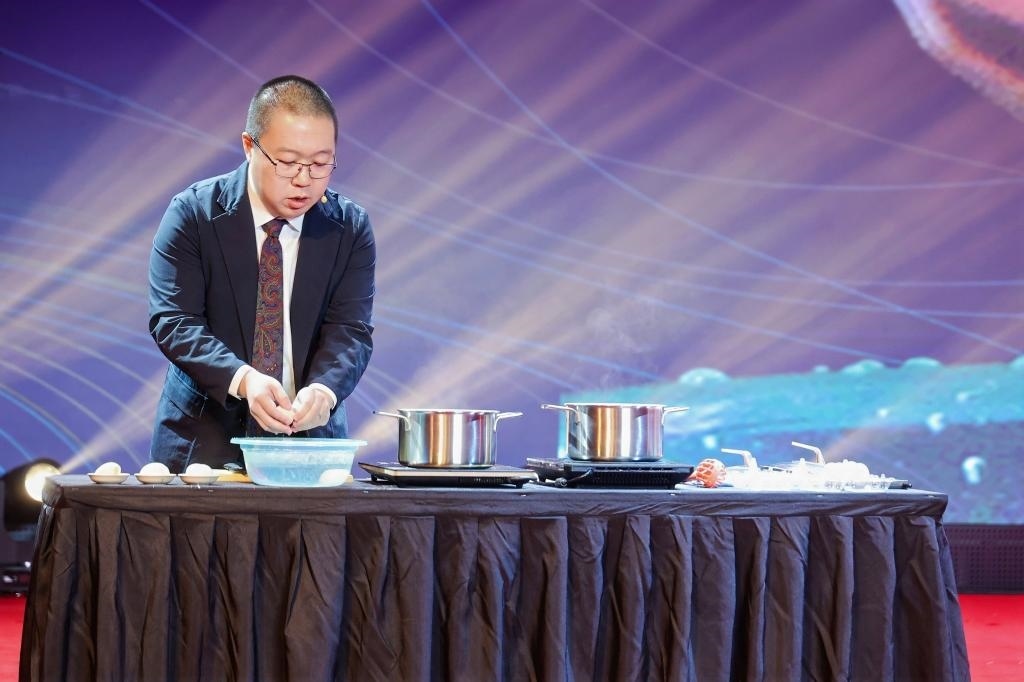 11月22日拍攝的為觀眾展示煮雞蛋和蒸雞蛋化學原理的實驗。新華社發(fā)