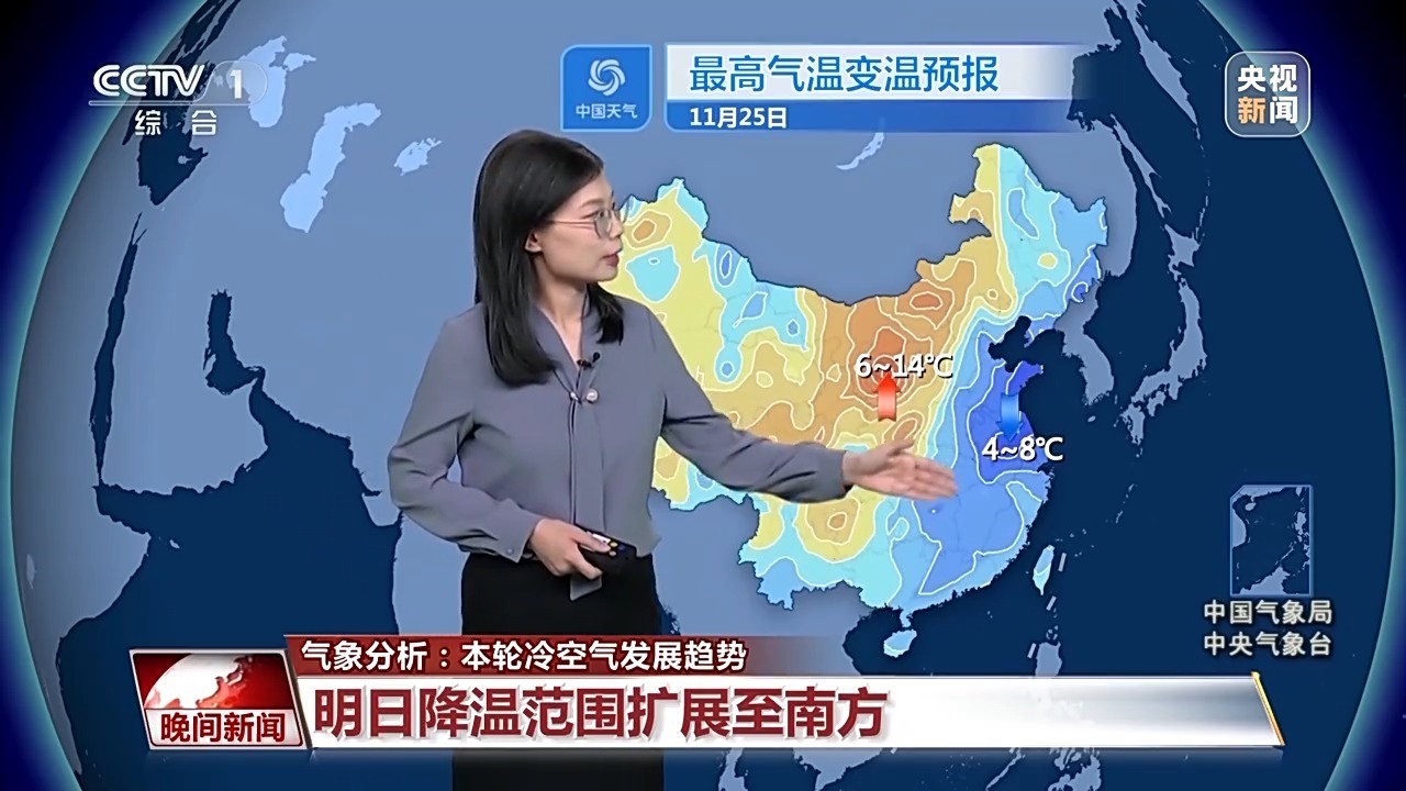 25日冷空氣將快速東移南下,降溫的范圍也會向南擴展到南方大部地區(qū),尤其是在山東、江蘇、安徽一帶,最高氣溫單日降幅可以達到4~8度。最高氣溫會降到常年正常水平附近,10度線會南壓到黃淮,20度線會退至華南一帶。