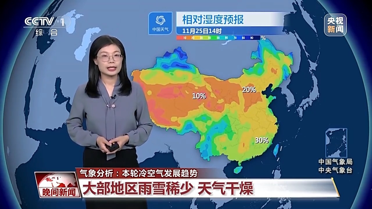 冷空氣帶來的雨雪并不多,而且在偏北風(fēng)吹拂之下,天氣會非常干燥。像是西北華北等地,午后的相對濕度可能只有20%左右,局部地區(qū)甚至不足10%,就連南方相對濕度也只有30%上下,所以整體都會是比較干燥的狀態(tài),大家要及時補充水分,并且注意用火安全。