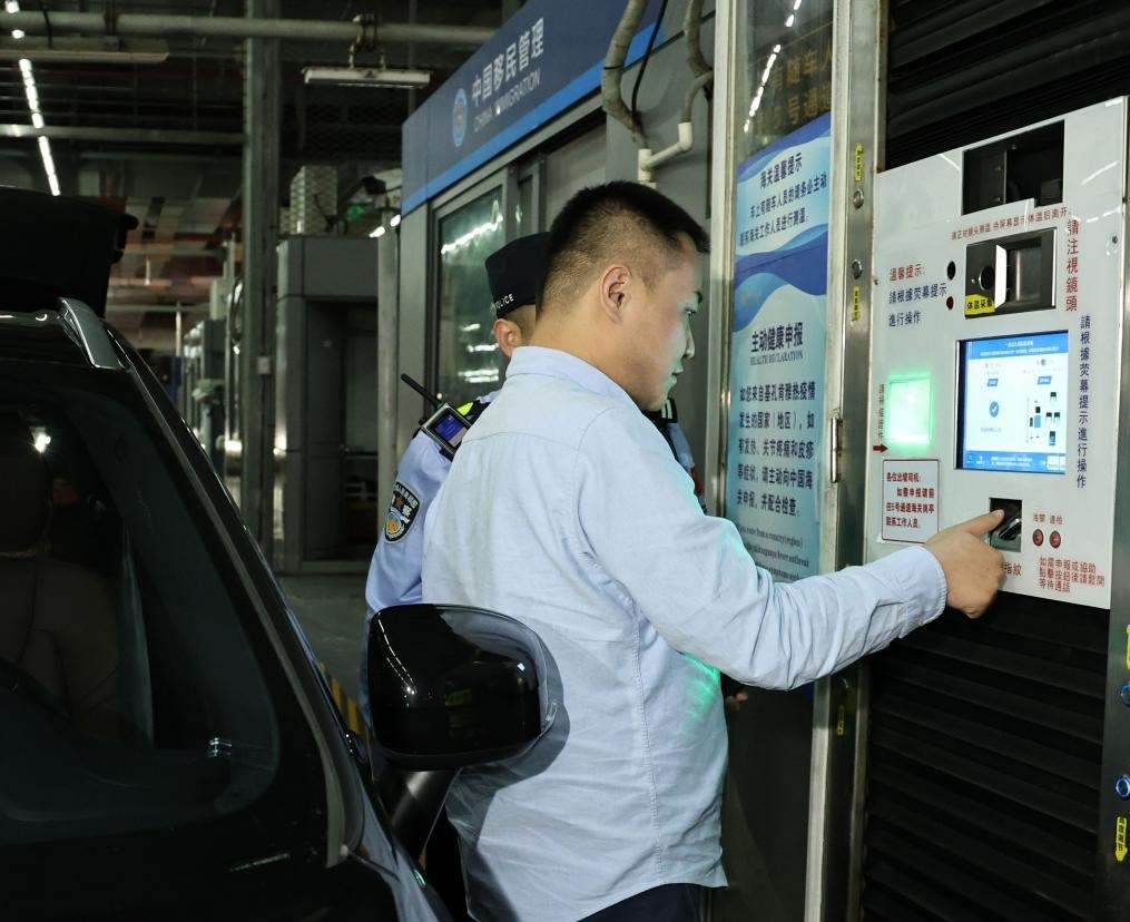 11月15日零時(shí),“粵車南下”首位通關(guān)車主周先生在“一站式”通道辦理通關(guān)手續(xù)。新華社記者 黃國保 攝