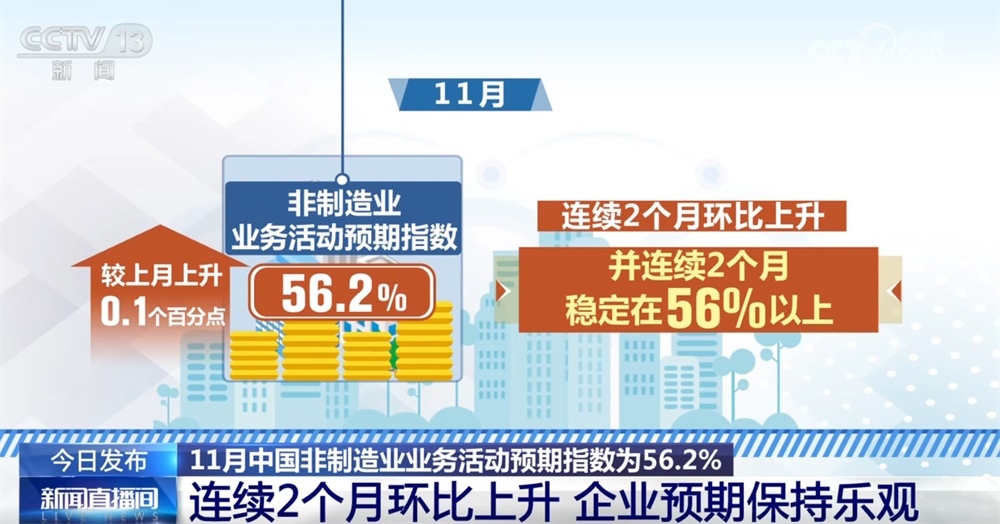 11月中國(guó)非制造業(yè)商務(wù)活動(dòng)指數(shù)為49.5%:金融活動(dòng)和新動(dòng)能表現(xiàn)良好 企業(yè)預(yù)期樂(lè)觀
