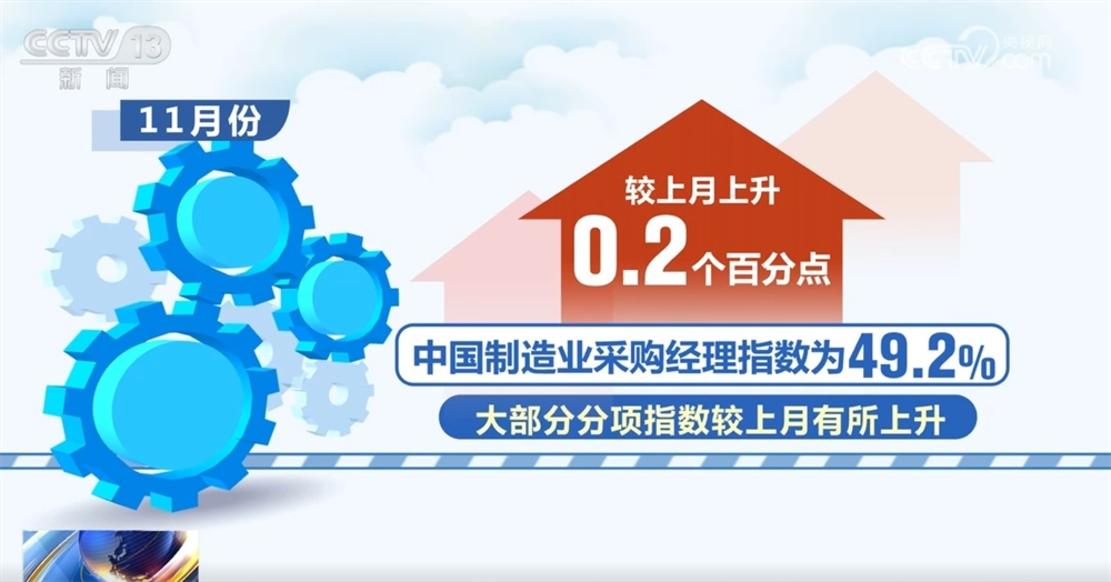 11月份中國(guó)制造業(yè)采購(gòu)經(jīng)理指數(shù)為49.2%,較上月上升0.2個(gè)百分點(diǎn),大部分分項(xiàng)指數(shù)較上月有所上升。