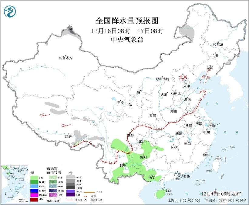 全國降水量預(yù)報圖(12月15日08時-16日08時)