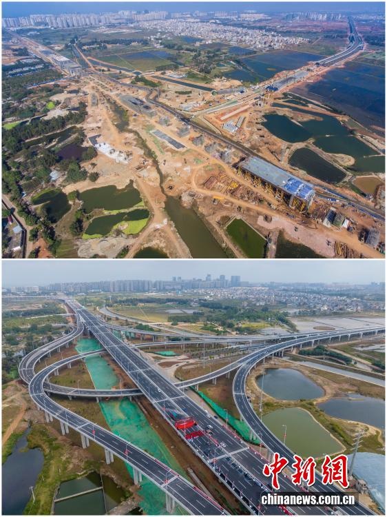 2025年12月18日,海南自由貿(mào)易港正式啟動(dòng)全島封關(guān)。近年來,海南自貿(mào)港建設(shè)在利好政策帶動(dòng)下不斷刷新“自貿(mào)港速度”,一個(gè)個(gè)重大項(xiàng)目、重點(diǎn)園區(qū)拔地而起,直觀呈現(xiàn)海南自貿(mào)港的蓬勃生機(jī)。這里正成為中國(guó)對(duì)外開放的新前沿、互利合作的新熱土和推動(dòng)經(jīng)濟(jì)全球化的新引擎。上資料圖為2020年5月20日的??诮瓥|新區(qū)起步區(qū)路網(wǎng)建設(shè)施工現(xiàn)場(chǎng),下資料圖為2025年12月7日已初具規(guī)模的??诮瓥|新區(qū)起步區(qū)。(拼版圖,無人機(jī)照片)