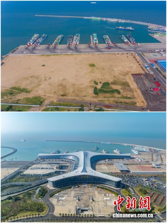 2025年12月18日,海南自由貿(mào)易港正式啟動(dòng)全島封關(guān)。近年來,海南自貿(mào)港建設(shè)在利好政策帶動(dòng)下不斷刷新“自貿(mào)港速度”,一個(gè)個(gè)重大項(xiàng)目、重點(diǎn)園區(qū)拔地而起,直觀呈現(xiàn)海南自貿(mào)港的蓬勃生機(jī)。這里正成為中國(guó)對(duì)外開放的新前沿、互利合作的新熱土和推動(dòng)經(jīng)濟(jì)全球化的新引擎。上資料圖為2018年9月29日的海口新海滾裝碼頭客運(yùn)綜合樞紐站項(xiàng)目建設(shè)地塊,下資料圖為2025年12月5日已投入使用的海口新海滾裝碼頭客運(yùn)綜合樞紐站。(拼版圖,無人機(jī)照片)