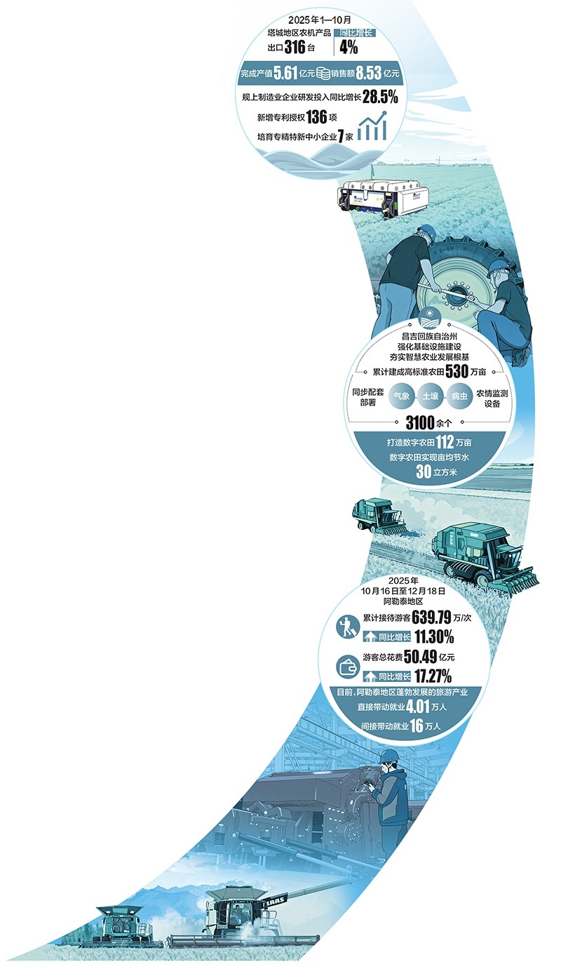 歲末之際,北疆大地處處涌動著蓬勃生機(jī)與創(chuàng)新活力。從智能農(nóng)機(jī)產(chǎn)銷兩旺到數(shù)字農(nóng)田“云端”管理,從冰雪熱潮點燃消費新引擎到物流樞紐貫通能源動脈,一幅以“新”為底色的發(fā)展畫卷正徐徐展開。本期北疆觀察版年終盤點,聚焦四組生動實踐,看新技術(shù)、新產(chǎn)業(yè)、新模式如何匯聚成新質(zhì)生產(chǎn)力,為區(qū)域高質(zhì)量發(fā)展注入強勁動能。