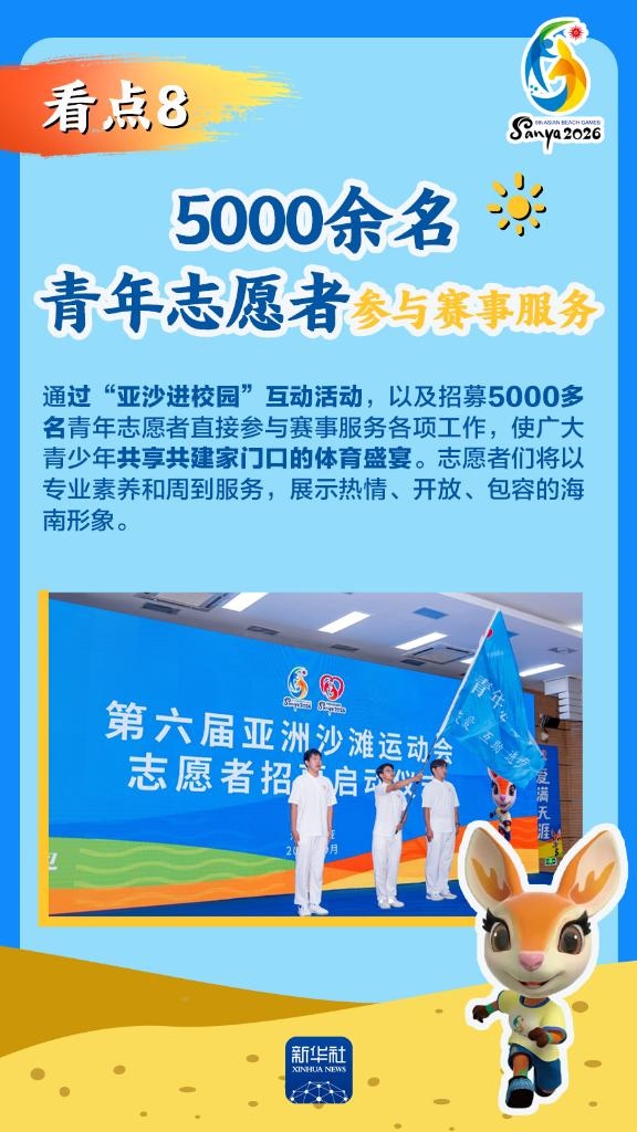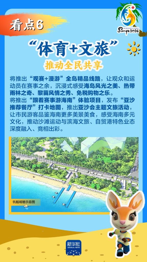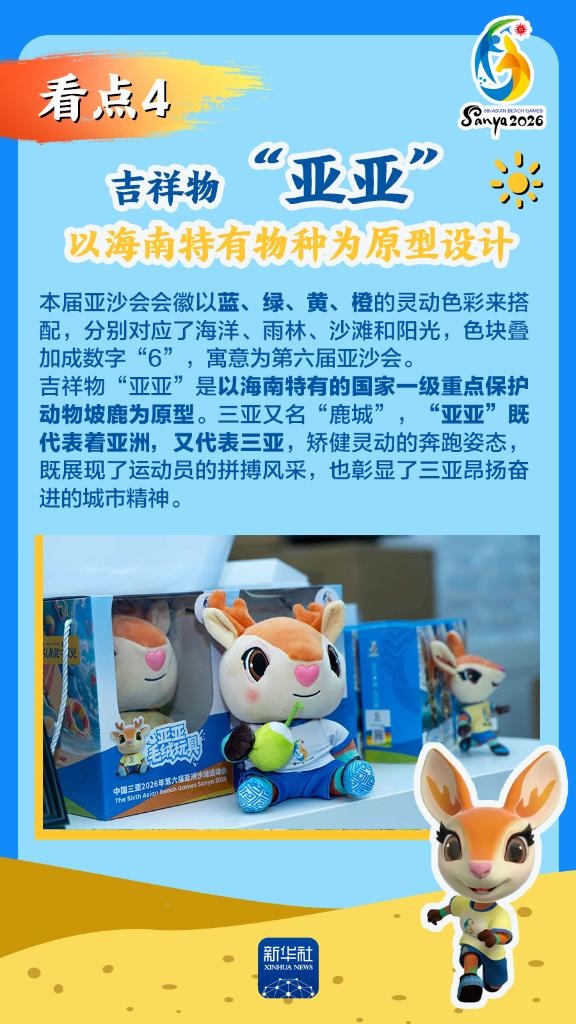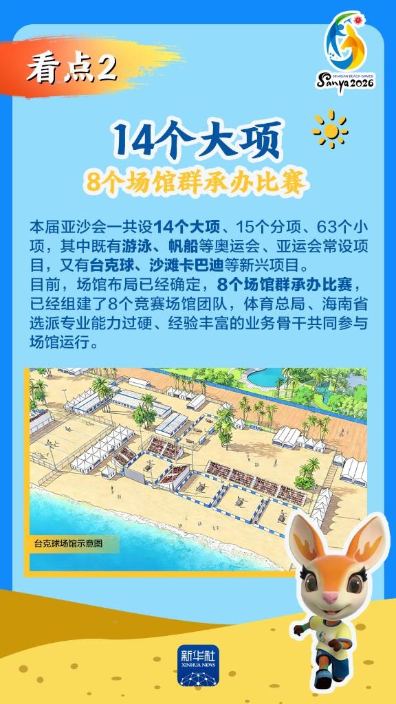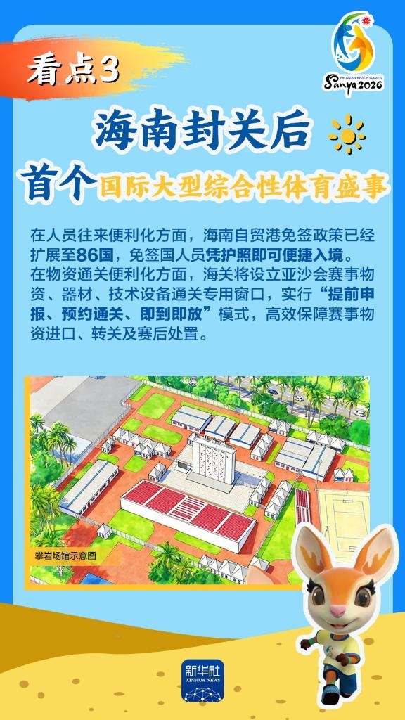 第六屆亞洲沙灘運動會(以下簡稱“亞沙會”)將于2026年4月22日至30日在海南三亞舉行,賽事歷時9天。作為海南自由貿易港封關運作后迎來的首個國際大型綜合性體育盛事,亞沙會都有哪些看點?為何值得期待?國新辦12日發(fā)布會做了詳細介紹,一起來看。