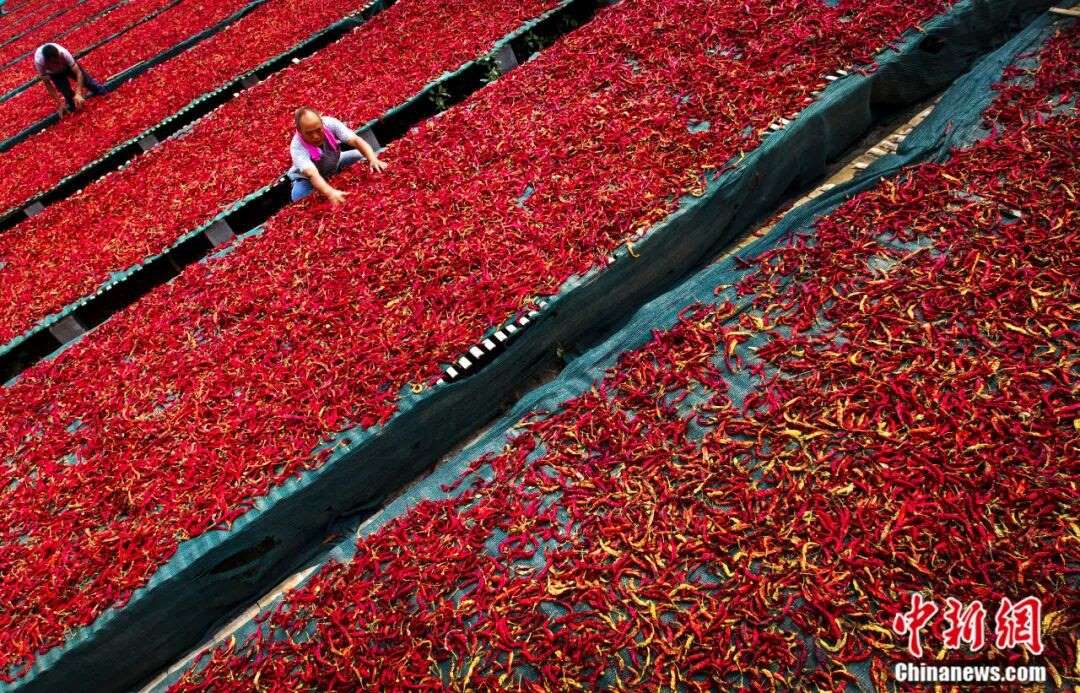 圖為雞澤縣椒農(nóng)在曬辣椒。(資料圖)中共雞澤縣委宣傳部供圖
