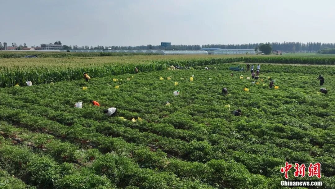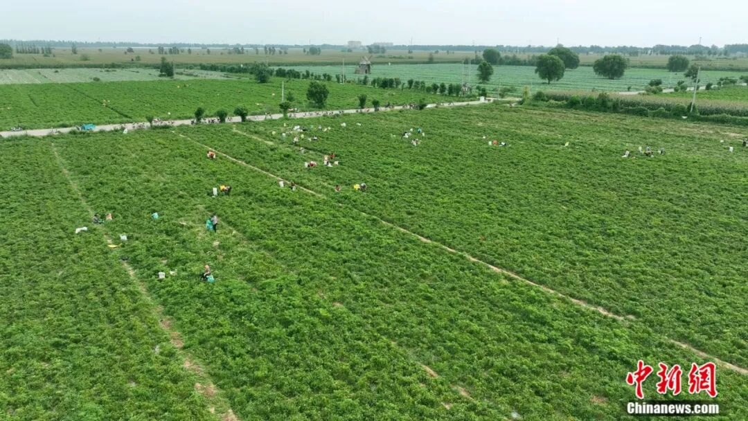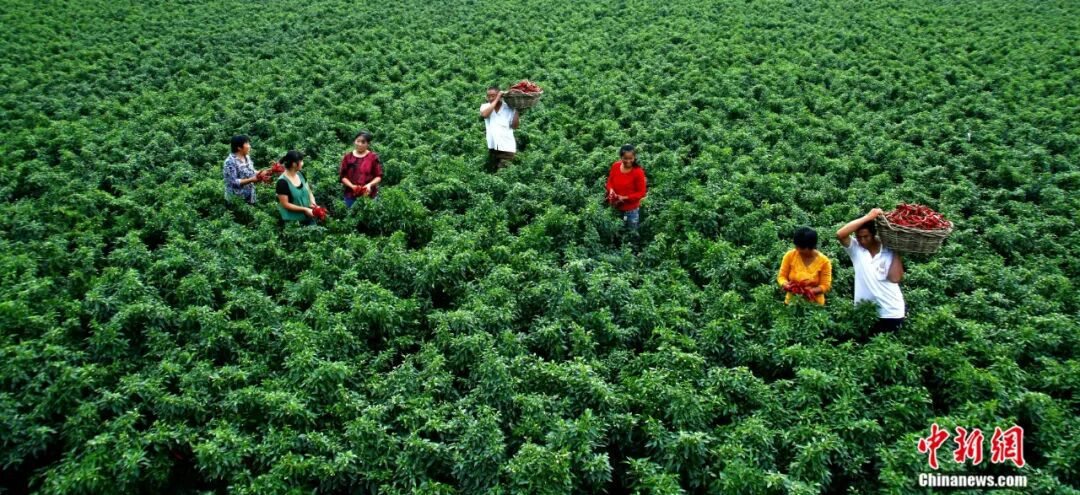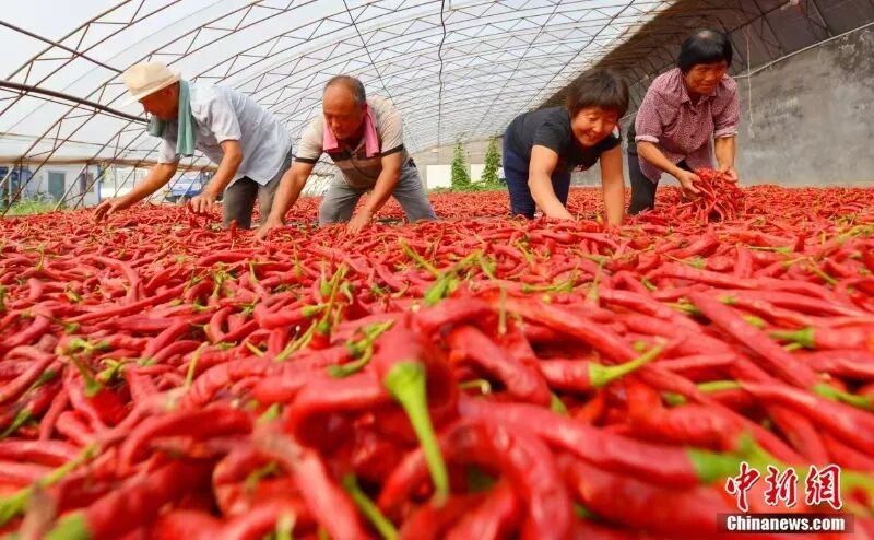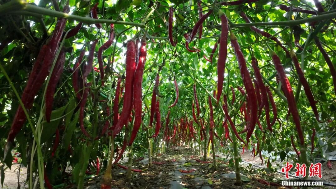 冀南平原上,連片的辣椒田如紅色海洋翻涌——細(xì)長的羊角椒緊緊扒著枝頭蕩來蕩去,油亮的皮膚曬得通紅。