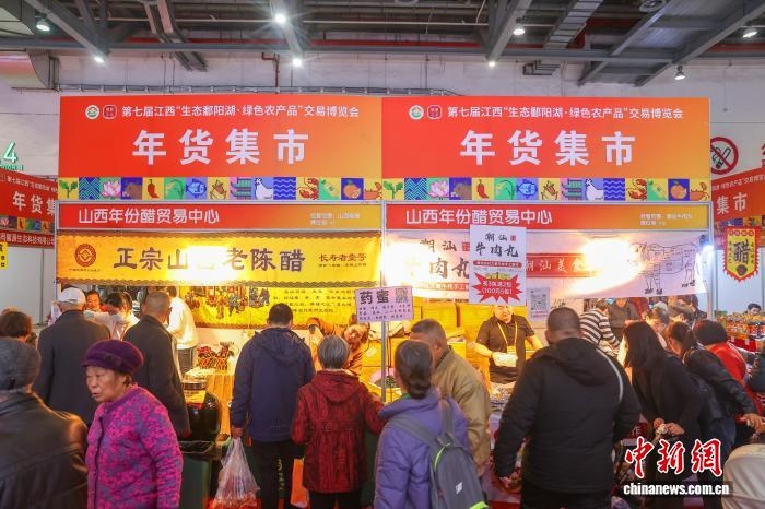 中新社南昌1月16日電 (記者 吳鵬泉)湖南新化紅茶、山西老陳醋、江西贛南臍橙……第七屆江西“生態(tài)鄱陽(yáng)湖·綠色農(nóng)產(chǎn)品”交易博覽會(huì)(簡(jiǎn)稱“江西農(nóng)博會(huì)”)16日在南昌開(kāi)幕,逾800家展商攜6000余款產(chǎn)品參展,攪熱江西年貨市場(chǎng)。