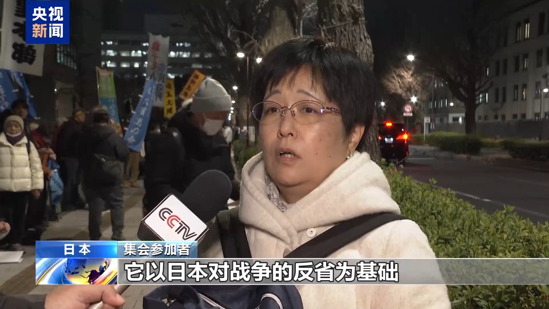 集會(huì)參加者:日本是擁有憲法第九條的國(guó)家,它以日本對(duì)戰(zhàn)爭(zhēng)的反省為基礎(chǔ),規(guī)定不再發(fā)動(dòng)戰(zhàn)爭(zhēng)。作為日本的首相,本應(yīng)挺起胸膛捍衛(wèi)和平才對(duì)。