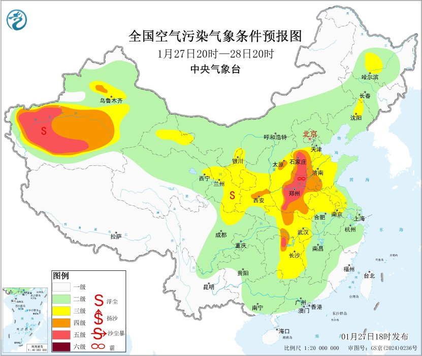 27日夜間至28日,區(qū)域大部大氣擴散條件一般,山西中南部、陜西關中等地的部分地區(qū)有輕至中度霾。29日起,受冷空氣和降水共同影響,霾天氣逐漸減弱消散。