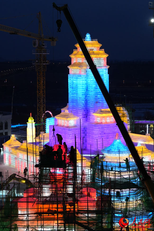 冰為磚、水為泥、燈為飾,打基礎(chǔ)、做鋼架、砌冰墻……最忙時(shí),曲超和5500余名工人夜以繼日,在攝氏零下的氣溫中“玩冰嬉雪”,睫毛上全是凝結(jié)的霜花?!氨┦嵌虝旱乃囆g(shù),一旦進(jìn)入冰雪施工季,都得緊抓時(shí)間,盡量把施工時(shí)間壓縮到最短,這樣留給游客欣賞的時(shí)間就會(huì)更長?!鼻f。