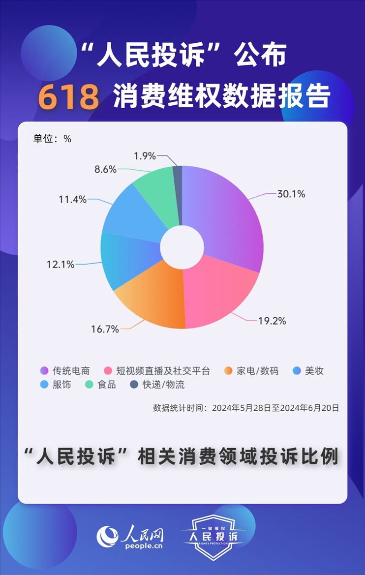 人民網(wǎng)“人民投訴”平臺發(fā)布“618”消費維權(quán)數(shù)據(jù)報告