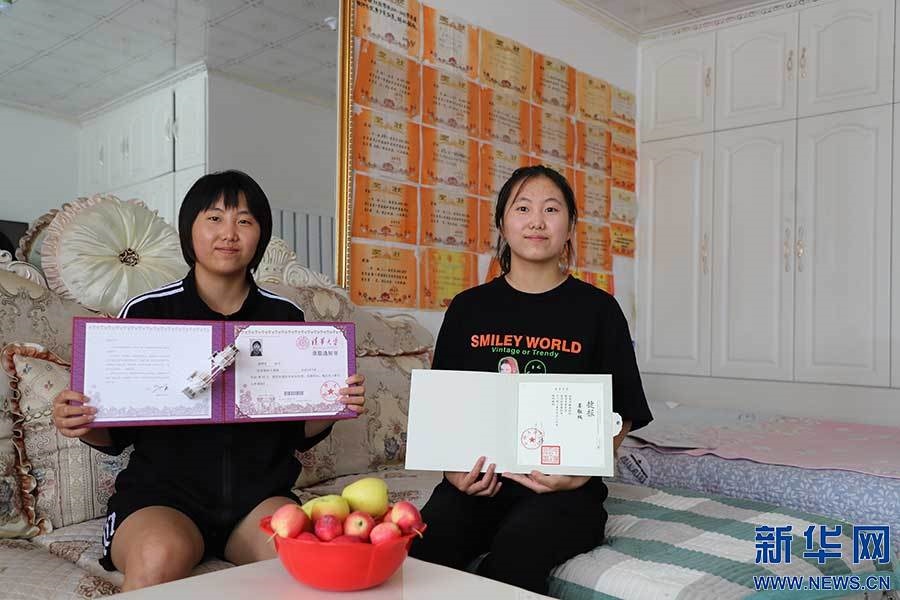 姐妹倆手捧錄取通知書,臉上洋溢著喜悅和自信。新華網(wǎng)