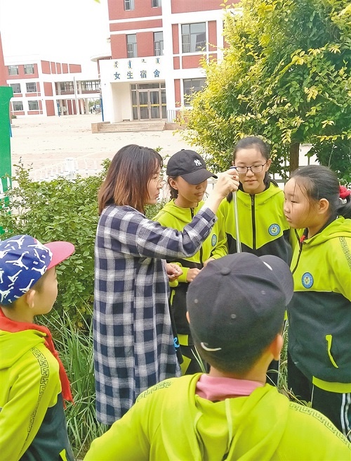 在老師的指導下記錄氣象數(shù)據(jù)。