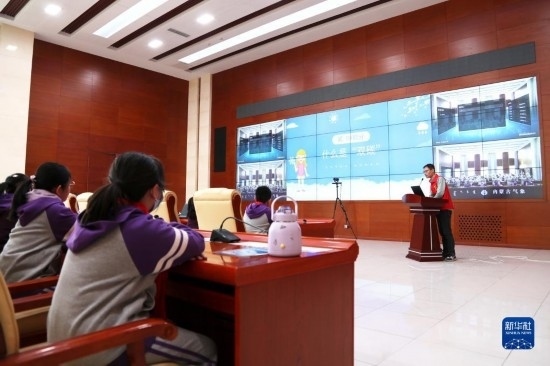 3月23日,工作人員在內(nèi)蒙古自治區(qū)氣象臺(tái)為學(xué)生講解氣象知識(shí)。