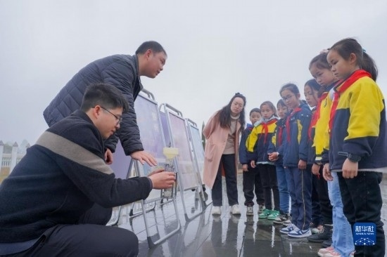 3月23日,貴州省黔東南苗族侗族自治州岑鞏縣氣象局工作人員為學(xué)生講解氣象知識(shí)。