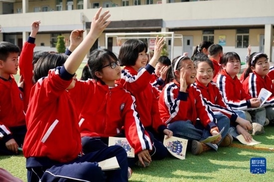 3月31日,徐州市漢橋小學(xué)的學(xué)生在鐵路安全知識講解中舉手回答互動問題。