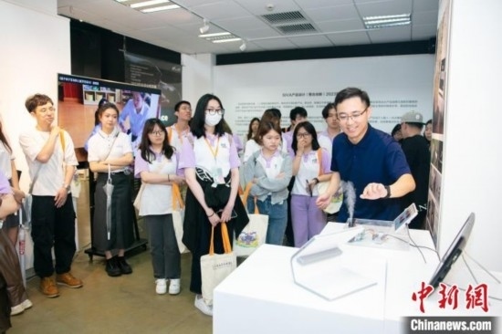 當(dāng)日,香港大學(xué)生參觀了松江廣富林遺址公園后,來(lái)到上海視覺(jué)藝術(shù)學(xué)院與該校學(xué)生結(jié)伴交流,參觀該校設(shè)計(jì)學(xué)院和新媒體藝術(shù)學(xué)院畢業(yè)作品展。