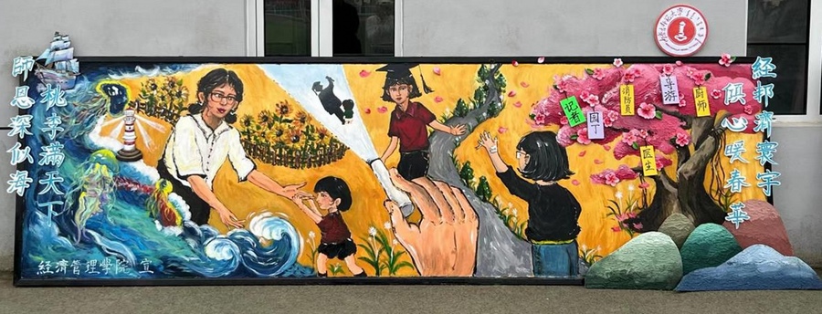 內(nèi)師大經(jīng)管學(xué)院學(xué)子以板報的形式祝福老師節(jié)日快樂