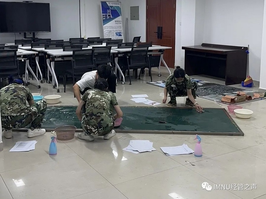 經(jīng)管同學(xué)們以板報(bào)形式展現(xiàn)“經(jīng)邦濟(jì)寰宇,傾世暖春華”主題,表達(dá)了對(duì)老師們的“師恩深似海,桃李滿天下”的說(shuō)不盡的感念。借此,同學(xué)們對(duì)軍訓(xùn)期間在身后默默奉獻(xiàn)的老師們表達(dá)深切感謝,通過(guò)軍訓(xùn)磨煉意志,更好展現(xiàn)經(jīng)管優(yōu)良品格。